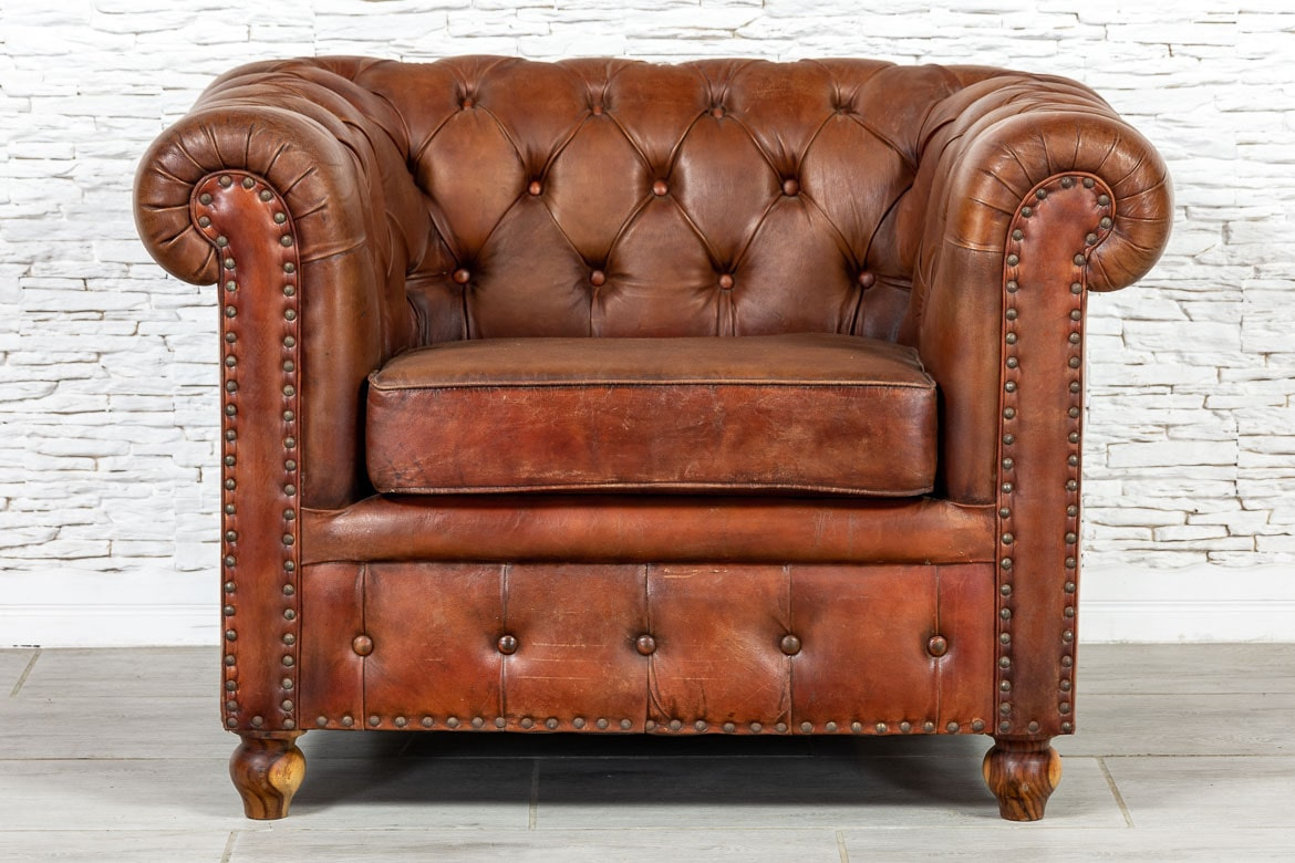 Indyjski skórzany fotel pikowany Chesterfield