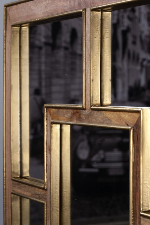 Lustro wykonano ręcznie w małej manufakturze w Indiach z drewna akacji indyjskiej. Krawędzie ramy pokryto okładziną z mosiądzu, co sprawia, że lustro jest wyjątkowo eleganckie. Polecamy zarówno do  klasycznych jak i nowoczesnych wnętrz.