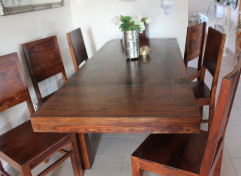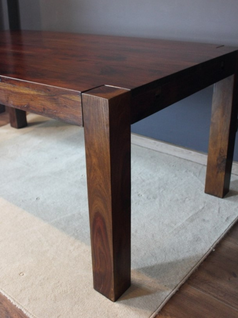 Mebel o neutralnym, ponadczasowym wyglądzie. Cechuje go prosta, stabilna i solidna konstrukcja. Wykonany z wyselekcjonowanego egzotycznego drewna mangowca indyjskiego, którego piękno wydobyto dzięki zastosowaniu tradycyjnych indyjskich technik stolarskich. Stół pomalowany ekologicznym, satynowym lakierem wodnym.