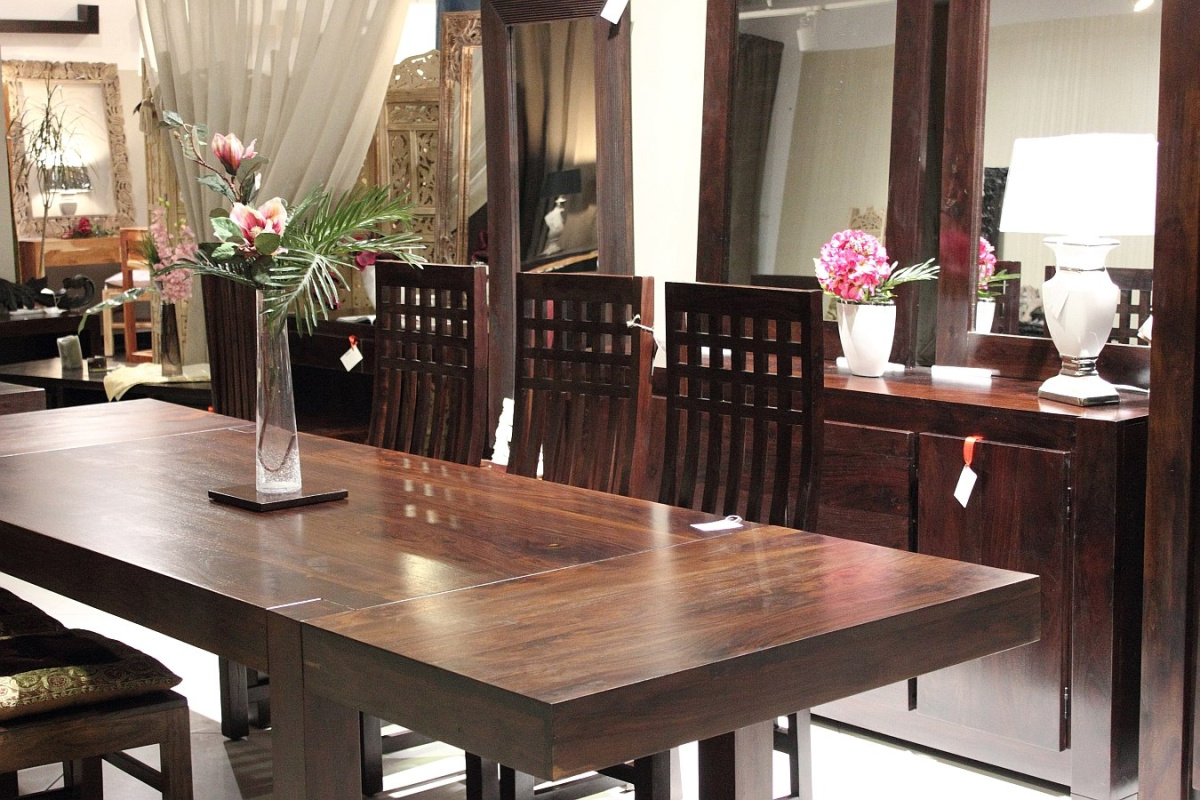 Meble kolonialne — drewniany stół rozkładany do jadalni.