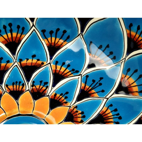 Umywalka jest wykonana w tradycyjnej technice Talavera i pochodzi z małej miejscowości Dolores Hidalgo w centralnym Meksyku. Technika Talavera charakteryzuje się bogactwem wzornictwa oraz intensywnością kolorów. Każda umywalka jest unikalna i z pewnością podkreśli wyjątkowość i styl Twojej łazienki.