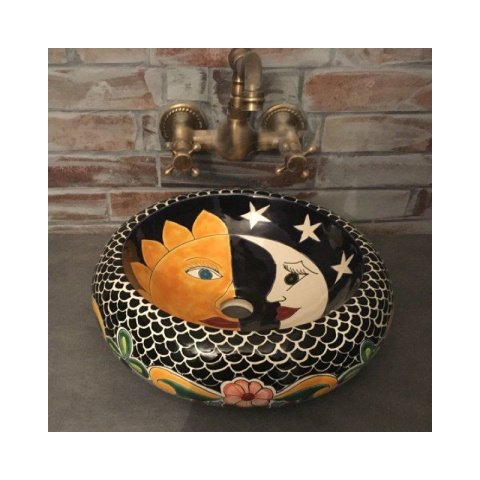 Ceramiczna umywalka nablatowa z pięknym wzorem z Meksyku.