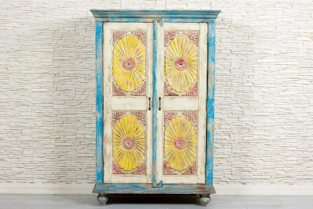 Kolorowa szafa indyjska przecierana