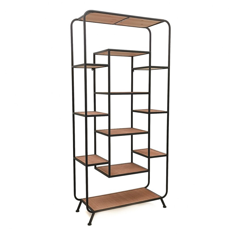 Designerski, metalowy regał z drewnianymi półkami marki Clayre & Eef.