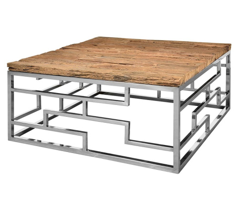 Nowoczesny, duży stolik kawowy LONDON marki Belldeco, wykonany z drewna z recyklingu oraz stali nierdzewnej. Stolik posiada masywny, połyskujący stelaż, który przepięknie kontrastuje ze szczotkowanym, porowatym blatem. Stolik idealny do surowych przestrzeni loftu. Wspaniale zagra z naturalnymi dodatkami takimi jak glina, len i bujna roślinność.