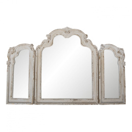 To wyjątkowe lustro to piękny element dekoracyjny, który może dodać stylu i elegancji do każdego pomieszczenia. Ta piękna rama lustra, została wykonana z drewna, daje mu rustykalny wygląd, który doskonale komponuje się z różnymi rodzajami wnętrz. Przetarcia i postarzenia zmiękczają jego dworkowy charakter, a eleganckie zwieńczenie dodaje mu uroku i klasy.