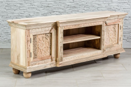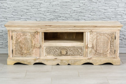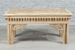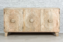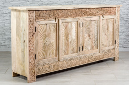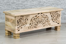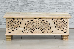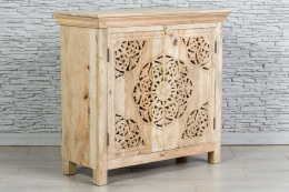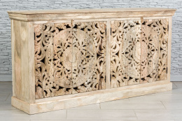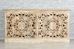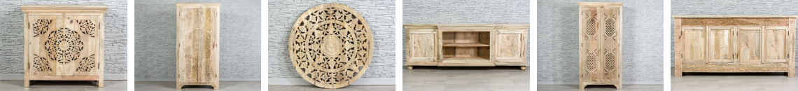 Meble indyjskie - surowe mango to wyjątkowa kolekcja rzeźbionych mebli i paneli ściennych w naturalnym wydaniu. Te przepiękne produkty nie są pokryte żadną farbą ani lakierem, dlatego możesz wykończyć je w zależności od potrzeb i pomysłu, a dodatkowo stworzyć swój własny, niepowtarzalny zestaw mebli do Twojego wnętrza. Każdy z mebli możemy również pomalować dla Ciebie na zamówienie. W tej zjawiskowej serii znajdziesz wiele mebli z Indii, które zachwycą Cię detalami i autentycznością. W kolekcji dostępne meble takie jak: rzeźbiony panel ścienny, panel dekoracyjny mandala, komoda z drewna mango, ażurowa ława kawowa, orientalna szafka RTV, indyjskie biurko z szufladami, drewniana szafa z rzeźbionymi frontami, szeroka konsola kolonialna, szafka z mandalą, rzeźbiony regał indyjski i wiele, wiele innych unikatowych mebli indyjskich, które zachwycą każdego miłośnika orientu i naturalnych surowców. Polecamy!