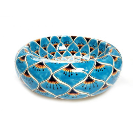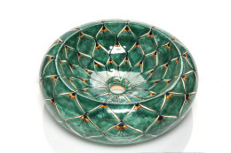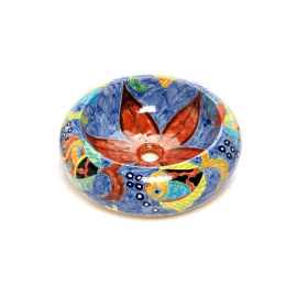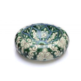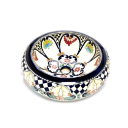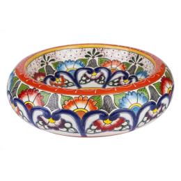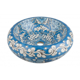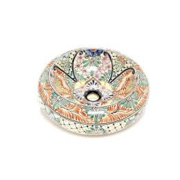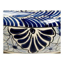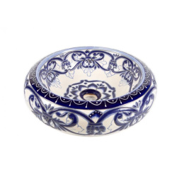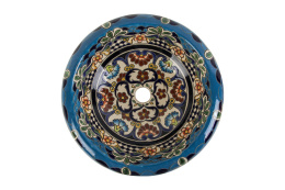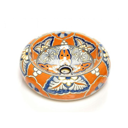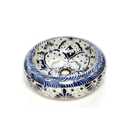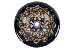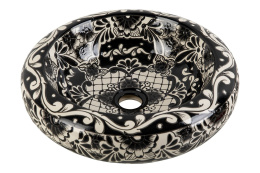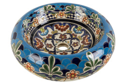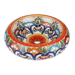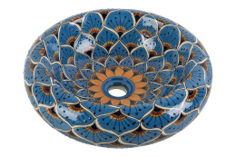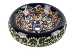 Umywalki ceramiczne nablatowe, obłe, są wyjątkowymi produktami w naszym sklepie. Budzą wiele pozytywnych emocji. Te meksykańskie umywalki posiadają ręcznie malowane zdobienia w środku i na zewnątrz misy. Umywalki są wykonane w tradycyjnej technice Talavera i pochodzą z miejscowości Dolores Hidalgo w Meksyku. Wzór zawarty w szkleniu jest odporny na ścieranie i zarysowania.