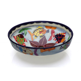 Misa płaska jest jednym z typów umywalek nablatowych. Umywalka posiada ręczne zdobienia wewnątrz oraz zewnątrz misy, wykonane przez artystów w Meksyku. Są to umywalki półwpuszczone, które można wmontować w blat do wysokości zdobień. Wzór zawarty w szkleniu jest odporny na ścieranie i zarysowania.