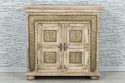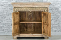 Mała, drewniana komoda indyjska z dekoracyjnym, mosiężnym frontem.