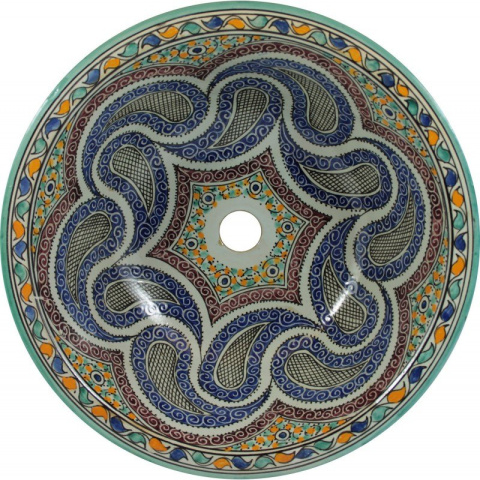 Umywalka została wykonana w Marakeszu, w kulturowo-historycznej stolicy Maroka. Wszystkie umywalki są malowane ręcznie przez marokańskiego artystę, więc każda umywalka stanowi unikalne dzieło sztuki użytkowej. Bogate wzornictwo i żywe kolory podkreślają oryginalny charakter umywalek. Zapewne taka umywalka doda unikatowości i oryginalności Twojej łazience.