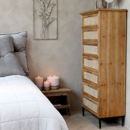 Seria mebli BOHO dostępna w naszym sklepie przywodzi na myśl słoneczne wakacje na egzotycznym Bali. Znajdziesz tu rattanowe krzesła, wiklinowe fotele, bambusowe stoliki, pufy z trawy morskiej, a także etniczne stoły drewniane, plecione stoliki kawowe oraz przeróżne ławki, hamaki i huśtawki z frędzlami. Meble w stylu BOHO są bardzo wdzięczne w swojej niesfornej nonszalancji i łatwo się w nich zakochać. Zgrabnie dopasują się do stylizacji vintage i loftowych. Odnajdą się także na zazielenionych tarasach i w romantycznych oranżeriach, oświetlonych sznurami dekoracyjnych lampek. Styl BOHO inspirowany jest podróżami i bardzo do nich inspiruje. Wprowadza w dobry nastrój i nadaje wnętrzu lekkości. Sprawdź czy w tej kolekcji uda Ci się znaleźć coś dla siebie.