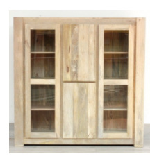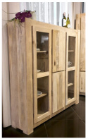 Drewniana, przeszklona witryna z naturalnego drewna mango.