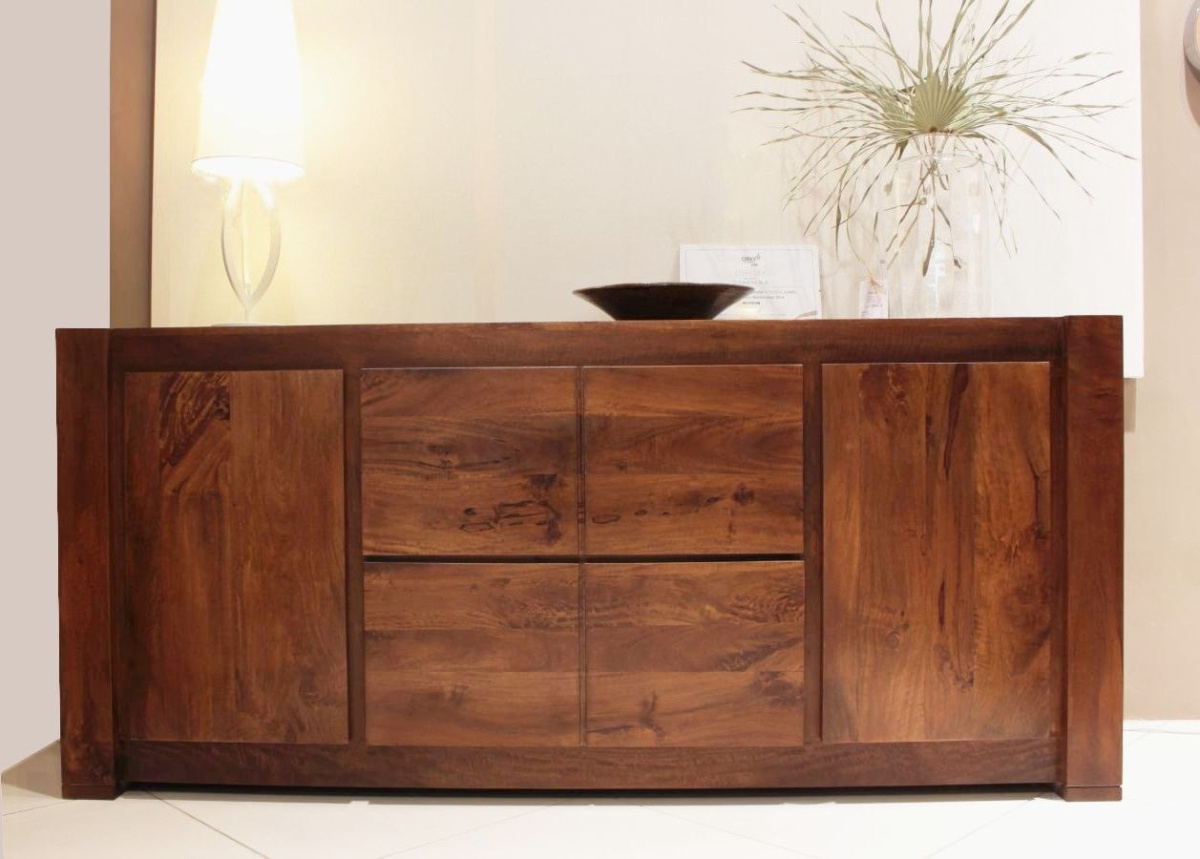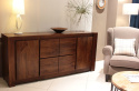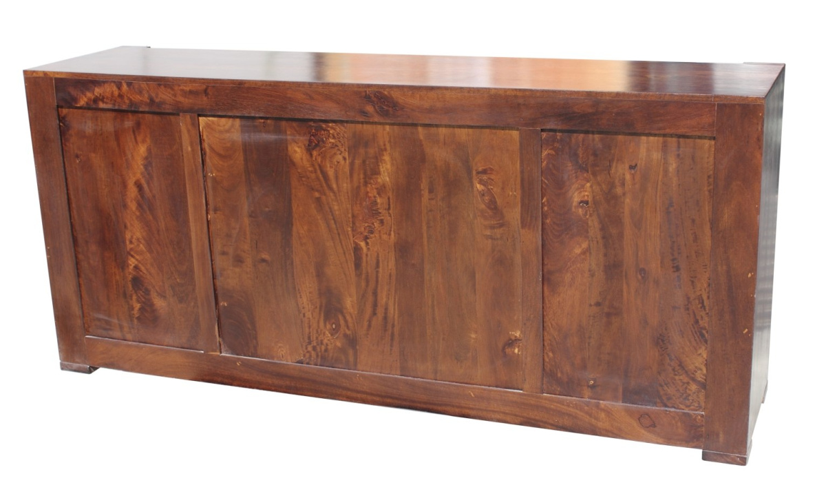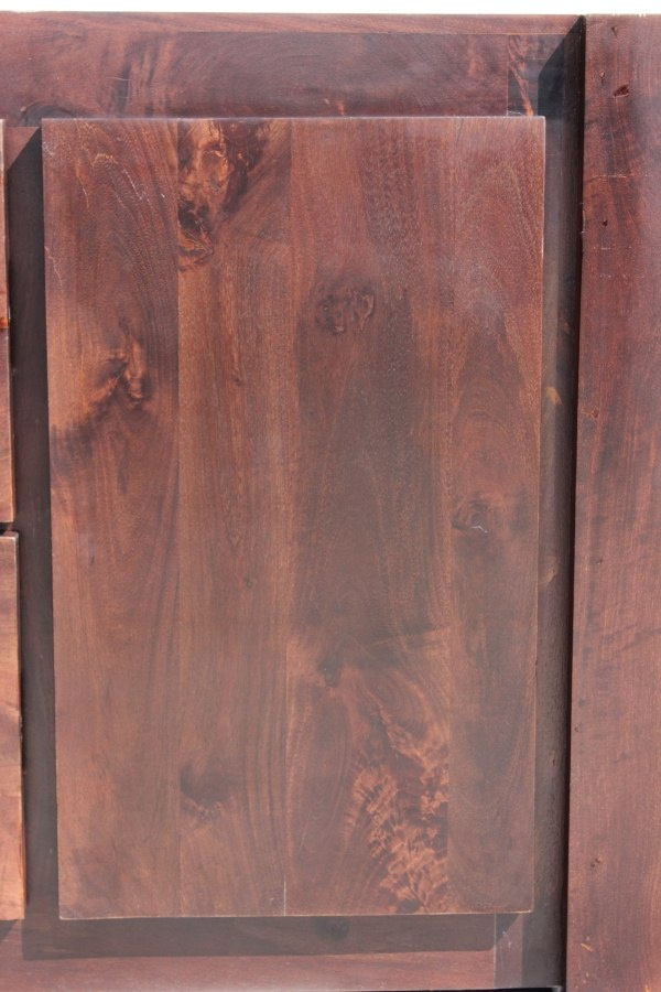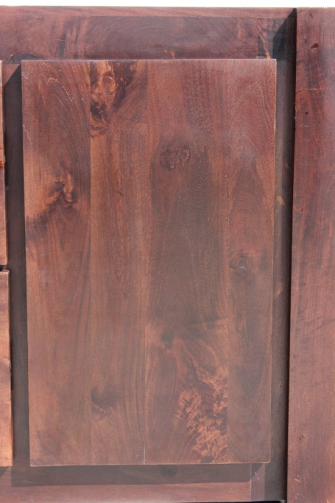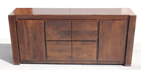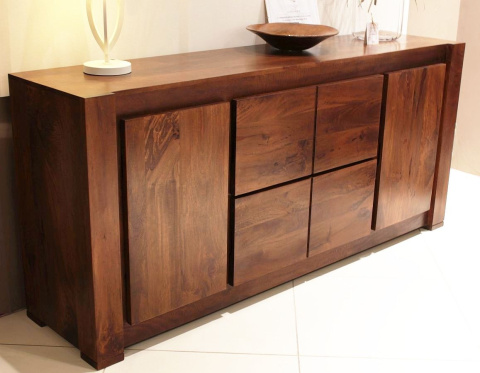 Ten mebel został wykonany z wysokiej jakości litego drewna mangowca indyjskiego w odcieniu ciepłego brązu oraz wykończony wodnym lakierem satynowym. Faktura egzotycznego drewna sprawia, że mimo swojej prostej formy komoda jest bardzo oryginalna.