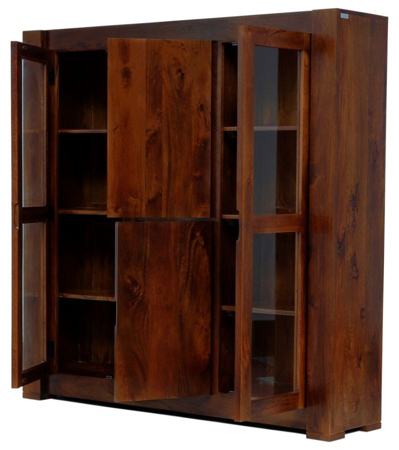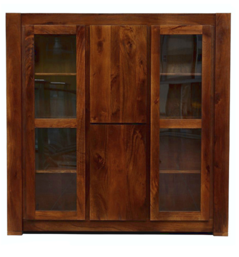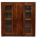 Komoda wykonana w Indiach z wysokiej jakości drewna mangowca indyjskiego w odcieniu średniego brązu. Witryna może służyć jako mebel wolnostojący lub jako nadstawka na komodę. Ten mebel posiada odkręcane nóżki, co pozwala na jej łatwe umieszczenie na blacie.