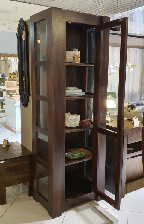 Meble kolonialne - drewniana wysoka witryna indyjska