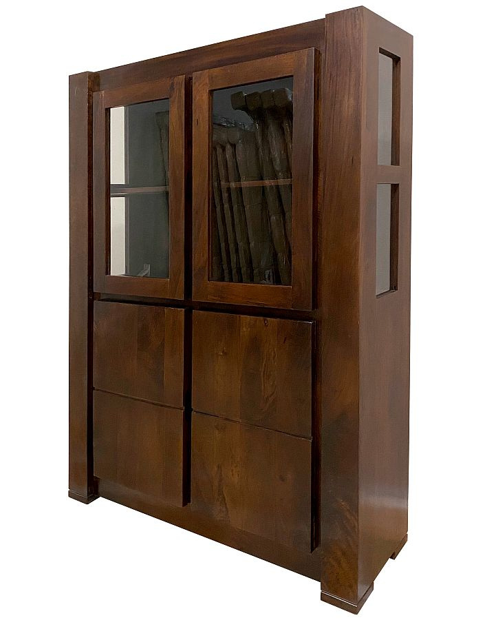 Witryna przeszklona z trzech stron, wewnątrz posiada drewniane półki. Uniwersalna forma tej klasycznej witryny sprawia, że mebel odnajdzie się zarówno w gabinecie, salonie jak i jadalni. Prostota w połączeniu z eleganckim odcieniem ciepłego brązu, daje wyjątkowy efekt. Mebel łączy w sobie styl i funkcjonalność. Odnajdzie się w wielu stylizacjach.