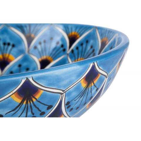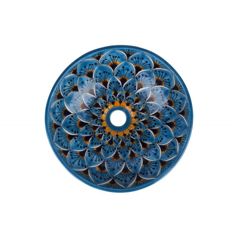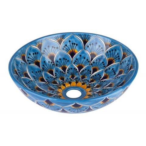Umywalka jest wykonana w tradycyjnej technice Talavera i pochodzi z małej miejscowości Dolores Hidalgo w centralnym Meksyku. Technika Talavera charakteryzuje się bogactwem wzornictwa oraz intensywnością kolorów. Każda umywalka jest unikalna i z pewnością podkreśli wyjątkowość i styl Twojej łazienki.