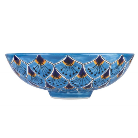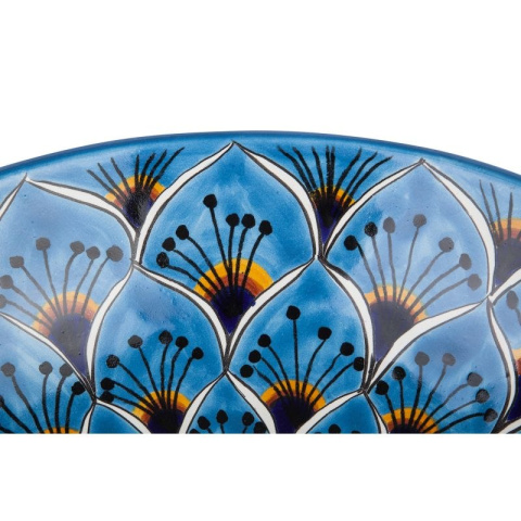 Niebieska umywalka ceramiczna meksykańska, w kształcie połówki kuli.