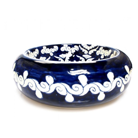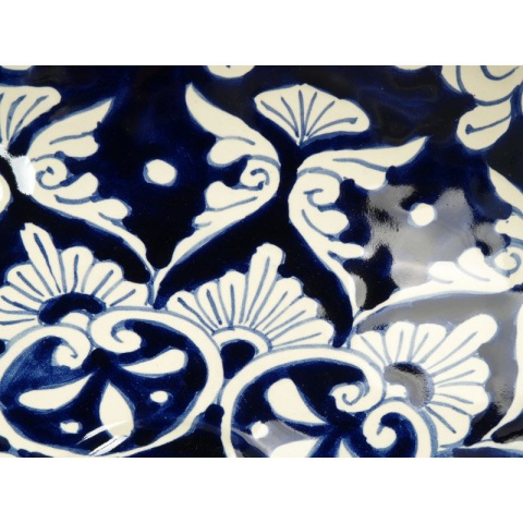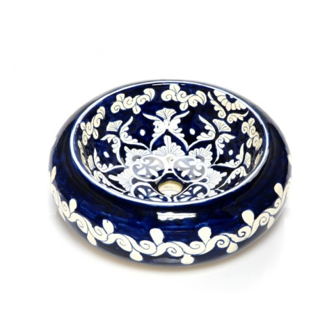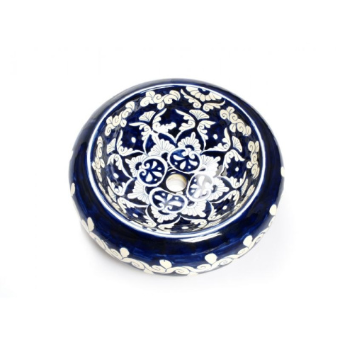 Umywalka ceramiczna jest wykonana w tradycyjnej technice Talavera i pochodzi z małej miejscowości Dolores Hidalgo w centralnym Meksyku.