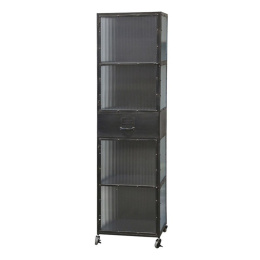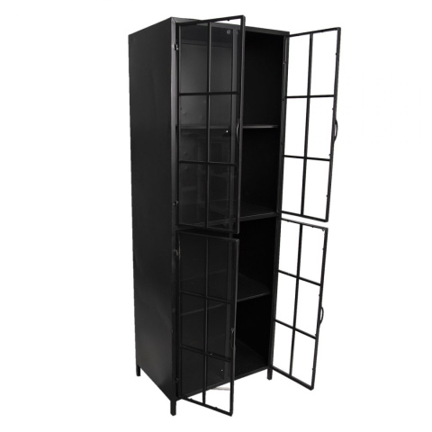 Witryna marki Clayre & Eef, która zaprojektowała ją z dbałością o każdy szczegół. Ta industrialna witryna wyeksponuje designerskie naczynia lub inne ozdoby. Zachwyca prostotą i surowym wykończeniem. Odnajdzie się w przestronnej kuchni lub jadalni w stylu loft/industrial. Może być również użyta jako bieliźniarka w surowej łazience lub nowoczesnym salonie spa. Witryna posiada w sumie cztery duże półki, a fronty na górze i na dole otwierają się osobno.