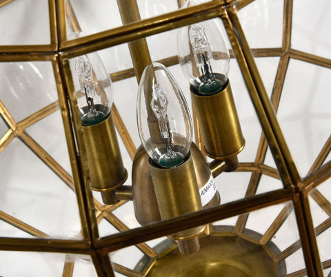 Materiał: stal nierdzewna, postarzany mosiądz, szkło
