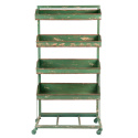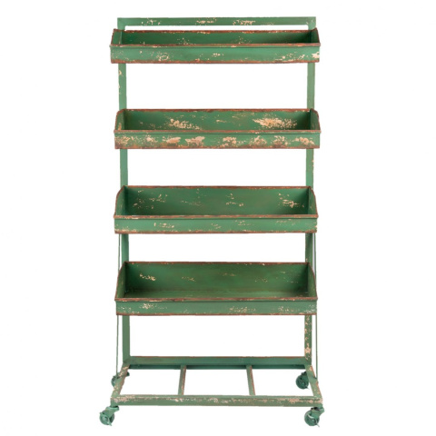 Postarzany, zielony stojak metalowy na kółkach marki Clayre & Eef.