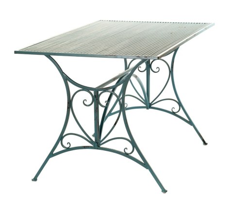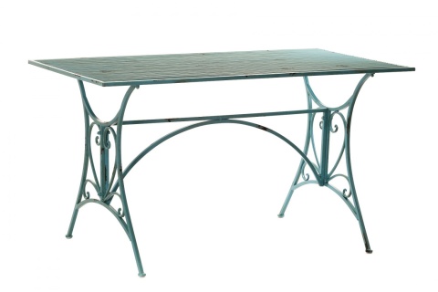 Stół wykonany z metalu, z licznymi rustykalnymi przetarciami. Zmieścisz przy nim gości, a przede wszystkim poczujesz się jak w słonecznej Prowansji. To piękny, a zarazem funkcjonalny mebel do Twojego ogrodu, który zachwyca designem i jakością wykonania.