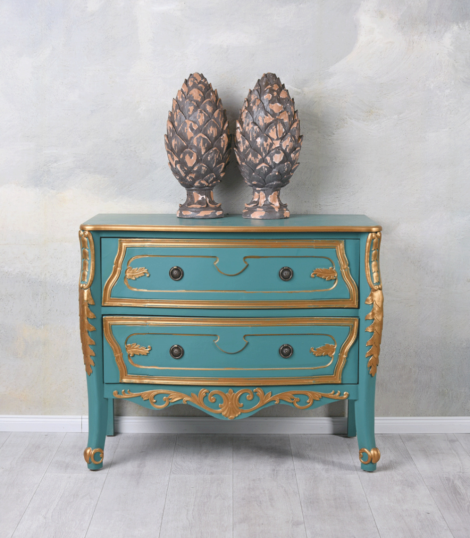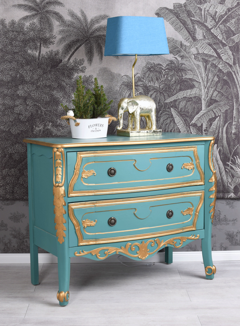 Komoda sprawdzi się w każdym pomieszczeniu, szczególnie w aranżacjach vintage, shabby oraz barokowych.