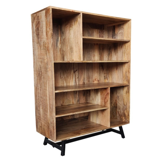 Designerski, drewniany regał na metalowych nóżkach marki Clayre & Eef. Regał w stylu loftowym, o ciekawym, asymetrycznym rozmieszczeniu półek, które idealnie sprawdzą się na książki, dekoracje lub rośliny. Ten ciekawy mebel, może być również elementem industrialnej kuchni lub jadalni. Świetnie sprawdzi się jako miejsce do przechowywania dekoracyjnych naczyń czy ozdobnego szkła.