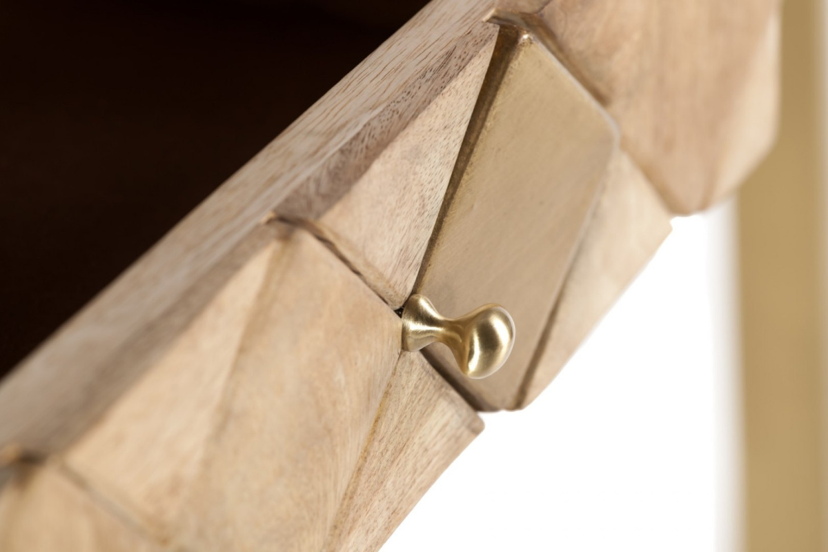 Produkt oryginalny, unikatowy, ręcznie wyprodukowany w manufakturze indyjskiej. To piękny mebel z litego drewna, który został wykonany ze szczególną dbałością o detale. Sprawdzi się w modernistycznych stylizacjach.