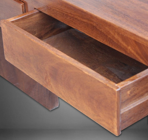 Nowoczesna, drewniana konsola z szufladami z drewna mango.