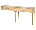 Nowoczesna, drewniana, konsola na metalowych, złotych nogach. Seria MODERN LIGHT marki Belldeco to połączenie prostoty i nowoczesności z eleganckim twistem. Design wzorowany na stylistyce lat 60-tych. Konsola sprawdzi się w różnych stylizacjach. Odnajdzie się w towarzystwie jasnych dodatków i ciekawych roślin. Jest meblem do każdego pomieszczenia co daje szerokie możliwości aranżacyjne.