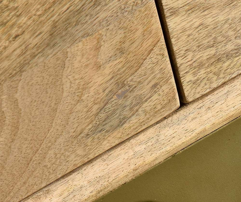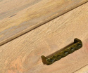 Konsola wykonana z drewna wysokiej jakości mango, posiada dwie szuflady z ozdobnymi uchwytami.