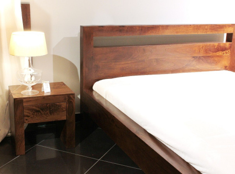 Nowoczesne, drewniane łóżko indyjskie o prostym kształcie.