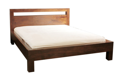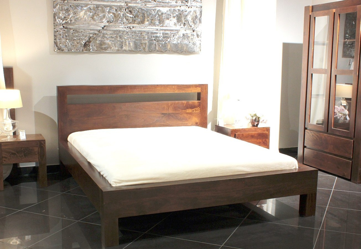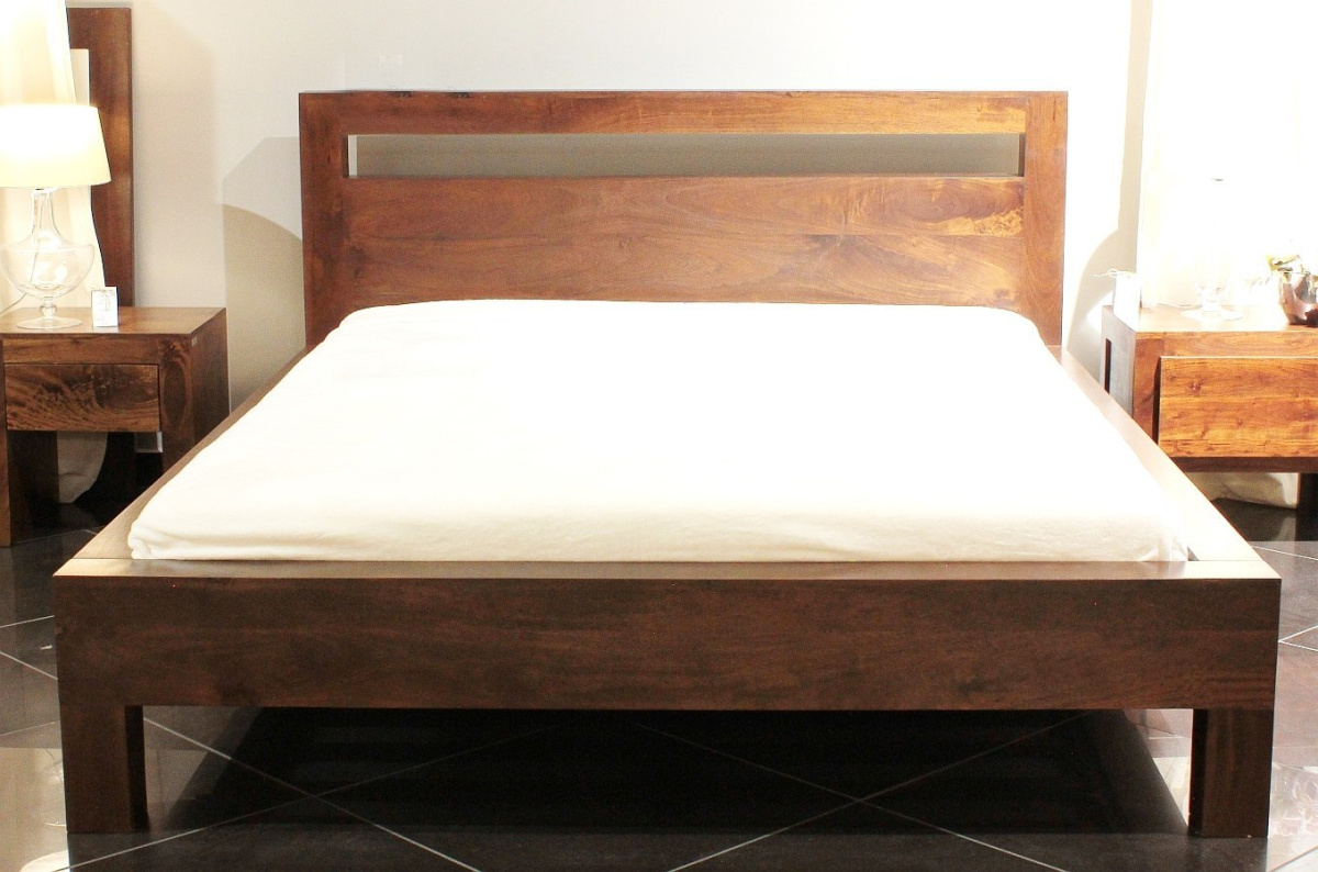 Brązowe meble kolonialne — drewniane łóżko do sypialni.