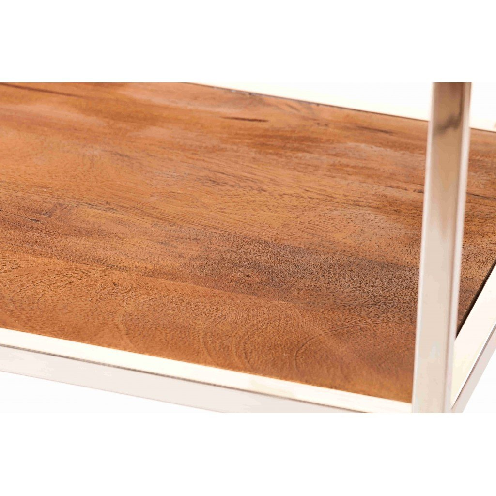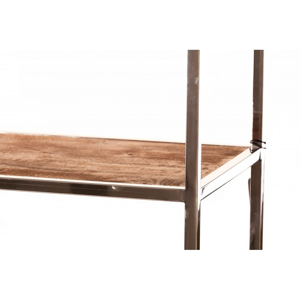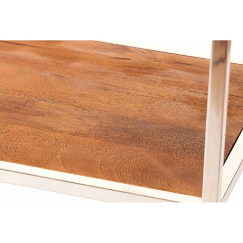 Minimalistyczna konstrukcja mebla, która łączy w sobie dobry styl i funkcjonalność. Półki z litego drewna, osadzono w niklowanym stelażu, który wspaniale domyka wysmakowaną całość. Regał odnajdzie się w nowoczesnym wnętrzu, a jego przeznaczenie zależy wyłącznie od twojej wyobraźni. Z pewnością pięknie wyeksponuje książki, ramki ze zdjęciami, stylowe ozdoby, a także naczynia w nowoczesnej kuchni. Możesz również umieścić na nim modne kwiaty.