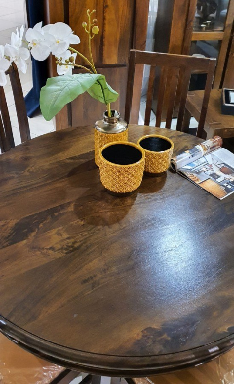 Okrągły indyjski stół drewniany w stylu kolonialnym