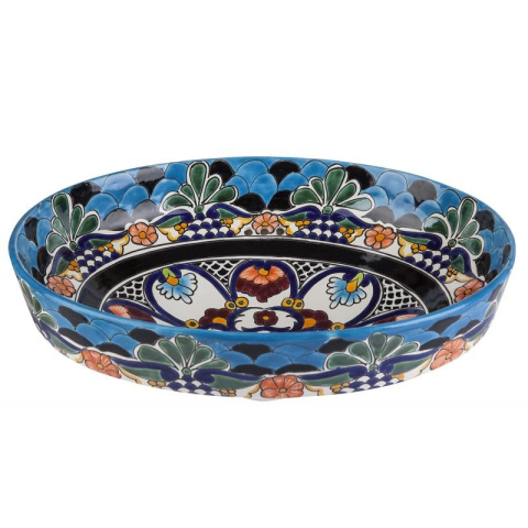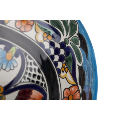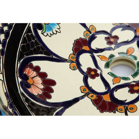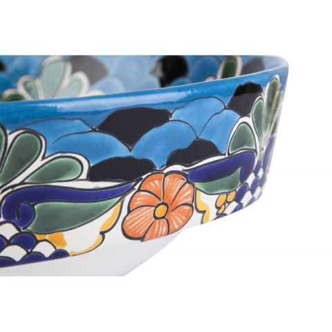 Umywalka jest wykonana w tradycyjnej technice Talavera i pochodzi z małej miejscowości Dolores Hidalgo w centralnym Meksyku. Technika Talavera charakteryzuje się bogactwem wzornictwa oraz intensywnością kolorów. Każda umywalka jest unikalna i z pewnością podkreśli wyjątkowość i styl Twojej łazienki.