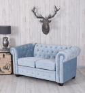 Pikowana niebieska sofa dwuosobowa Chesterfield
