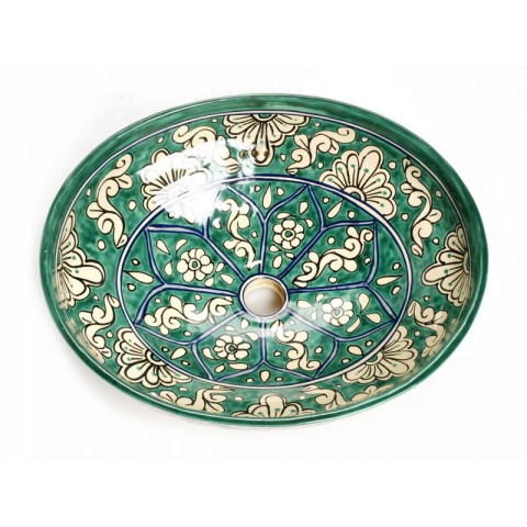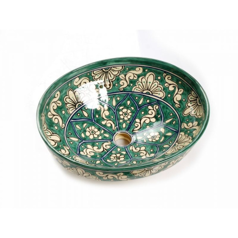 Zielona, nablatowa umywalka orientalna z Meksyku,