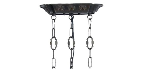 Ciekawy kształt tej oryginalnej lampy z przepiękną mozaiką z kolorowych szkiełek, zachwyca wzorem i grą barw. Zawieszona na trzech stylowych łańcuchach zwisających z ozdobnej podsufitki. Lampa zmienia nasycenie kolorów w zależności od rodzaju i mocy oświetlenia. Ta szeroka piękna lampa w stylu Tiffany odnajdzie się w jadalni lub salonie zawieszona nad stołem.
