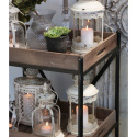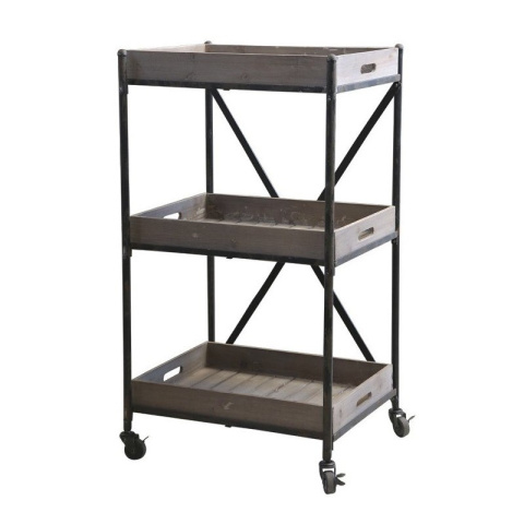Stylowy pomocnik na kółkach z trzema półkami - drewnianymi tacami, znanej duńskiej marki Chic Antique. Ta mobilna szafka wspaniale sprawdzi się jako organizer kuchenny lub łazienkowy. Możesz również postawić ją na balkonie czy tarasie i użyć jako przybornik ogrodniczy.