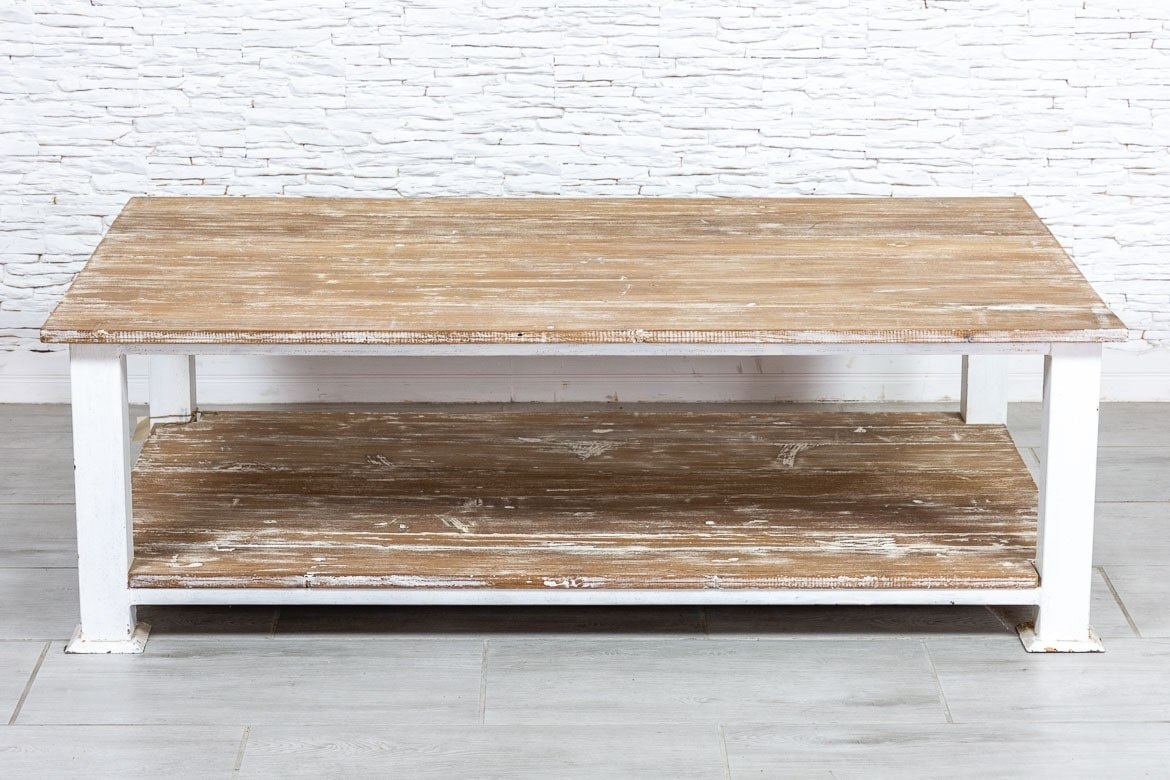 Duża, prostokątna ława loftwa, stolik z dolną półką.