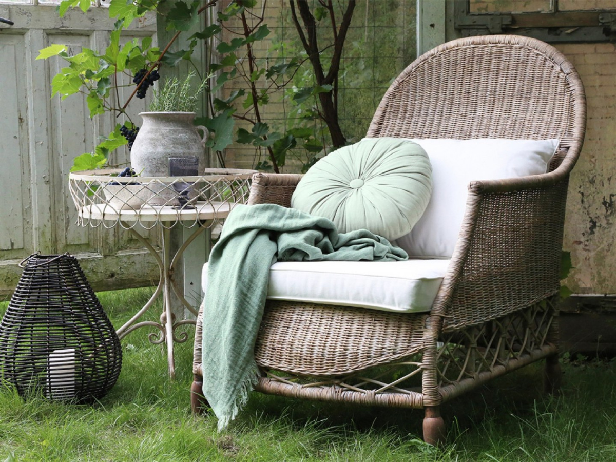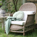 Ten zjawiskowy fotel zachwyca owalnym, eleganckim kształtem i naturalnymi odcieniami. Mimo swojego gabarytu prezentuje się lekko i delikatnie. Jest niezwykle wygodny i zaprasza do porannego relaksu z filiżanką kawy, lub popołudniowej drzemki. Idealny na taras lub do oranżerii, a także do romantycznego wnętrza w stylu boho lub hampton.