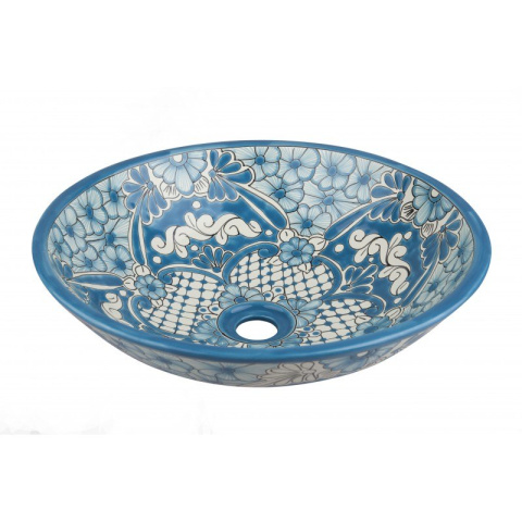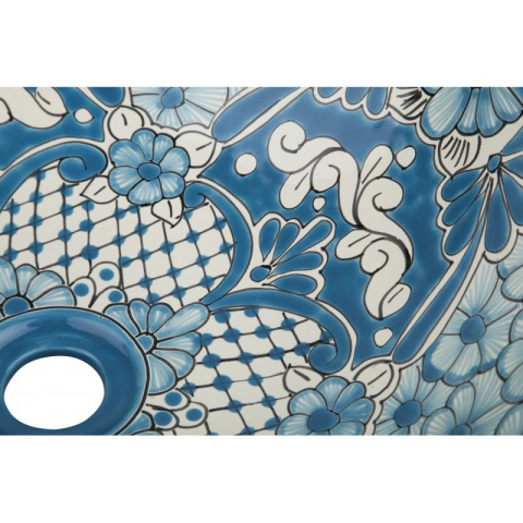 Umywalka posiada ręcznie malowane zdobienia w środku i na zewnątrz, a kształt misy sprawia, że wzór jest widoczny z każdej strony. Wszystkie umywalki są malowane ręcznie przez meksykańskiego artystę, więc każda umywalka stanowi unikalne dzieło sztuki użytkowej.