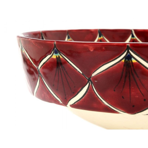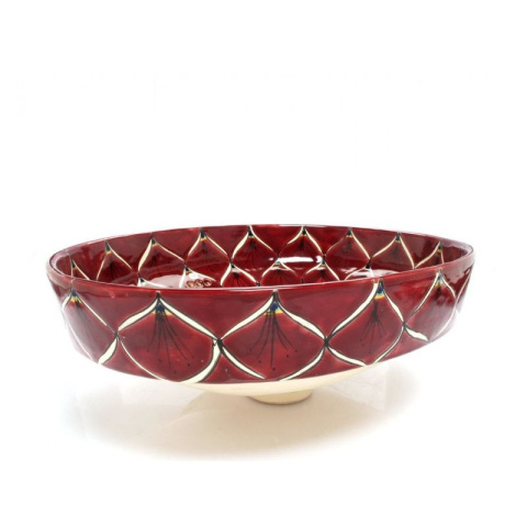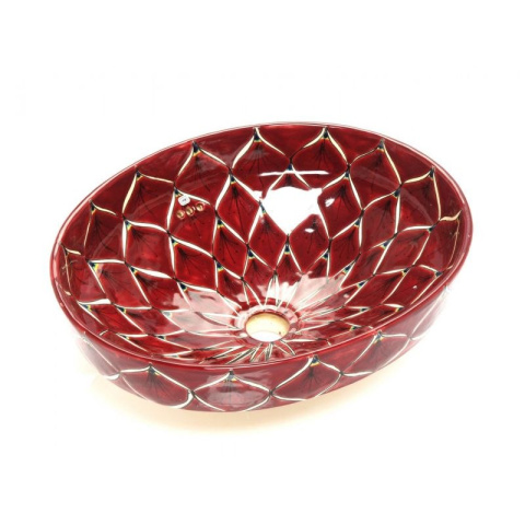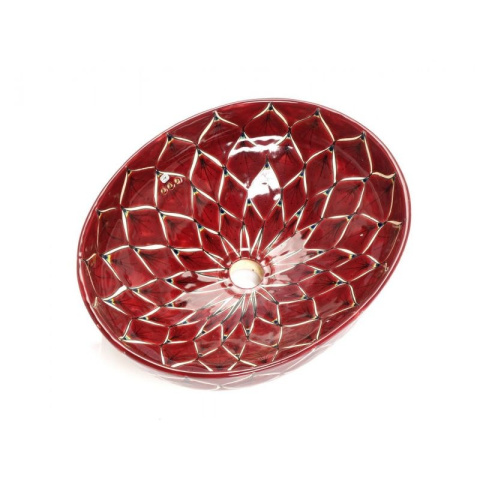 Posiada ręcznie malowane zdobienia w środku i na zewnątrz, a kształt misy sprawia, że wzór jest widoczny z każdej strony. Misa może być częściowa wpuszczona w blat, co daje ciekawy efekt wizualny i jest bardzo praktyczne.