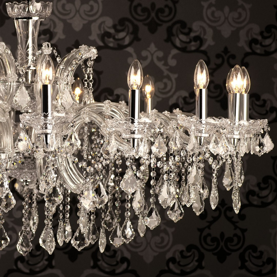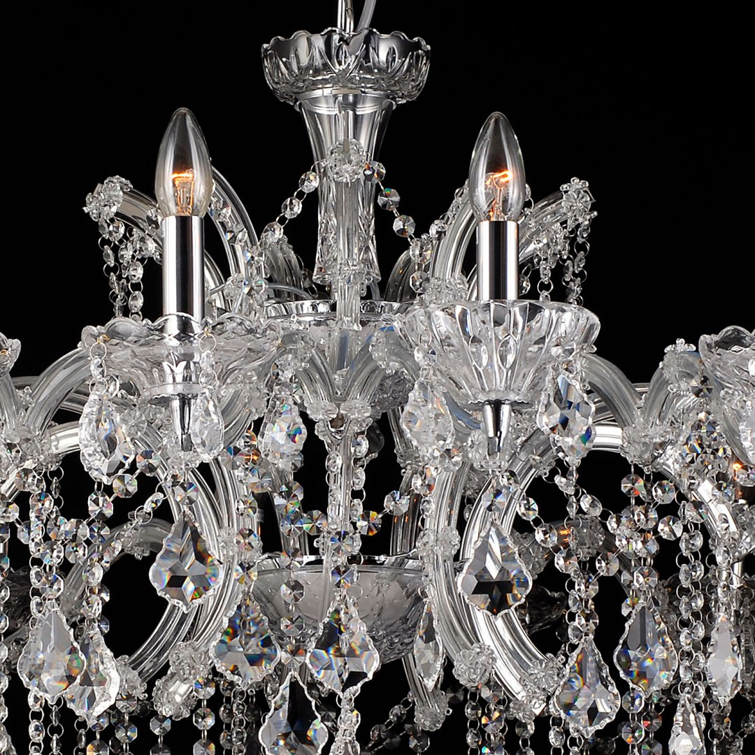 Kryształki o różnych kształtach, grubościach i rozmiarach stworzą magię i piękne obrazy na ścianach. Żyrandol wykonany z dbałością o każdy szczegół. Zadowoli nawet osoby bardzo wymagające i ceniące sobie najwyższy standard.