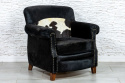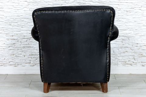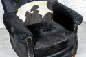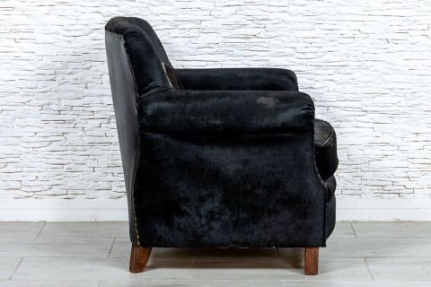 Oryginalny, czarny fotel indyjski tapicerowany skórą z włosiem,