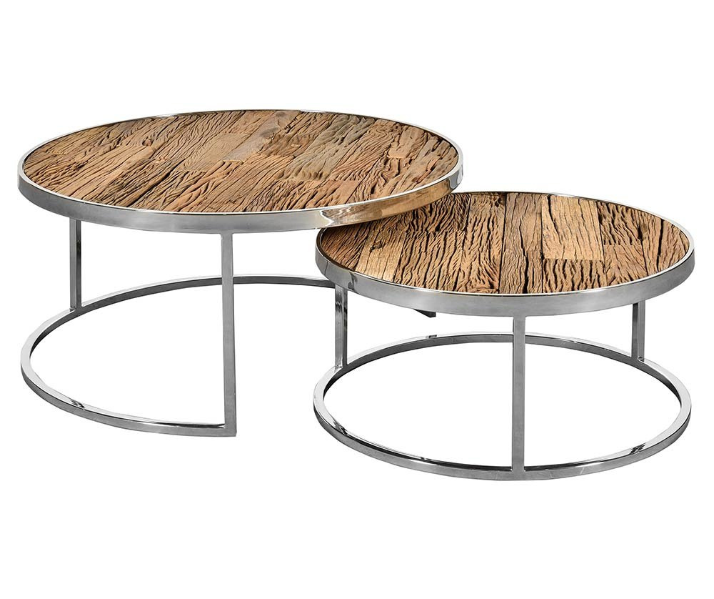 Komplet dwóch stolików loftowych z serii LONDON marki Belldeco. Stoliki wykonane z drewna z recyklingu oraz stali nierdzewnej. Drewno szczotkowane z licznymi bruzdami i spękaniami. W połączeniu z połyskującą stalą tworzy przepiękne połączenie. Drewno z recyklingu zyskuje coraz większą popularność, też ze względu na to, że jest przyjaznym środowisku produktem.
